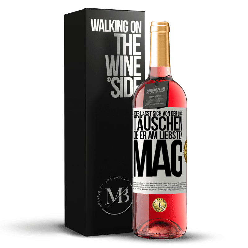 Roséwein. D.O. Cigales. Ernte 2024. Spanien. ROSÉ Ausgabe «Jeder lässt sich von der Lüge täuschen, die er am liebsten mag». Weißes Etikett. Anpassbares Etikett. Junger Wein. Tempranillo. Mensaje en una Botella by Esencias..