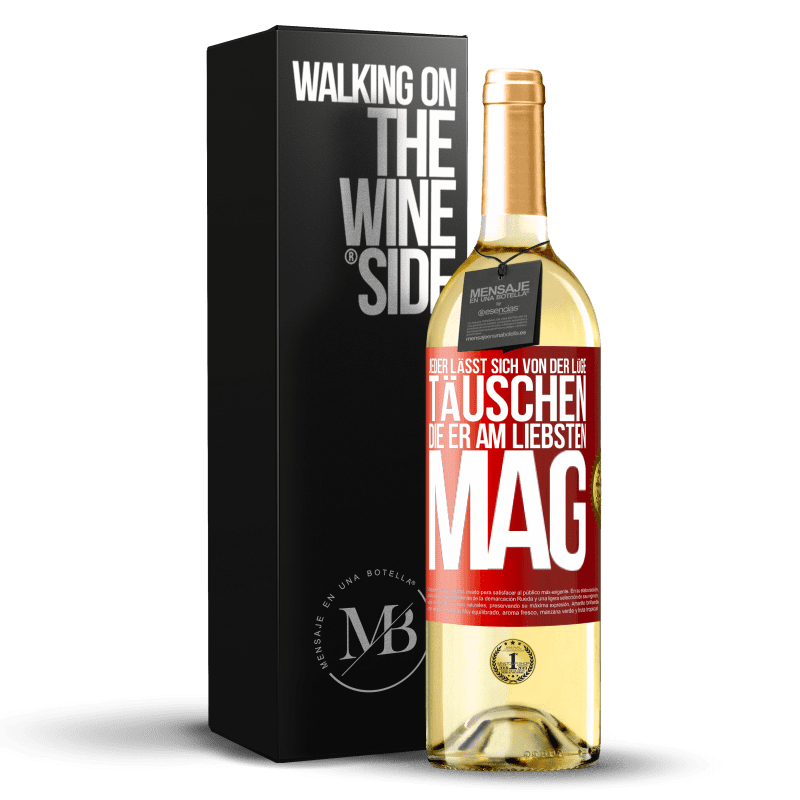 Weißwein. D.O. Rueda. Ernte 2024. Spanien. WHITE Ausgabe «Jeder lässt sich von der Lüge täuschen, die er am liebsten mag». Rote Markierung. Anpassbares Etikett. Junger Wein. Verdejo. Mensaje en una Botella by Esencias..