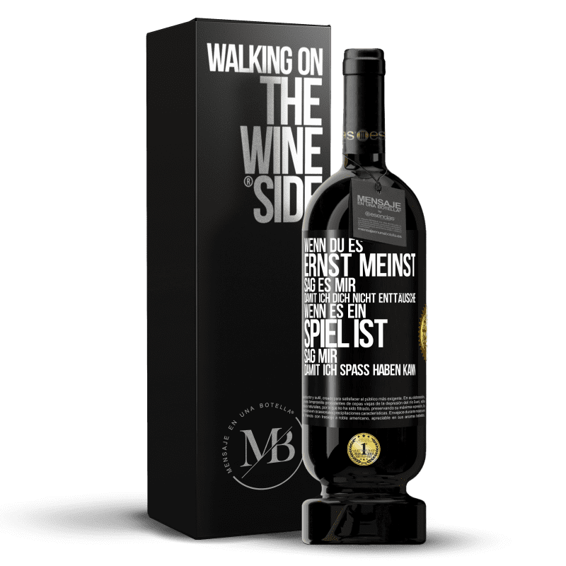 Rotwein. I.G.P. Vino de la Tierra de Castilla y León. Ernte 2015. Spanien. Premium Ausgabe MBS® Reserve «Wenn du es ernst meinst, sag es mir, damit ich dich nicht enttäusche. Wenn es ein Spiel ist, sag mir, damit ich Spaß haben kann». Schwarzes Etikett. Anpassbares Etikett. Reserve 12 Monate. Tempranillo. Mensaje en una Botella by Esencias..