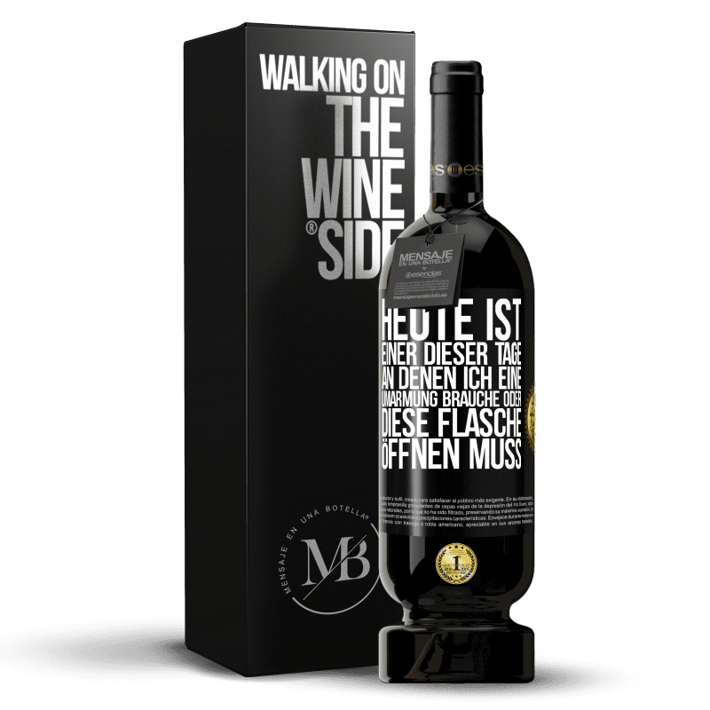 Rotwein. I.G.P. Vino de la Tierra de Castilla y León. Ernte 2016. Spanien. Premium Ausgabe MBS® Reserve «Heute ist einer dieser Tage, an denen ich eine Umarmung brauche oder diese Flasche öffnen muss». Schwarzes Etikett. Anpassbares Etikett. Reserve 12 Monate. Tempranillo. Mensaje en una Botella by Esencias..