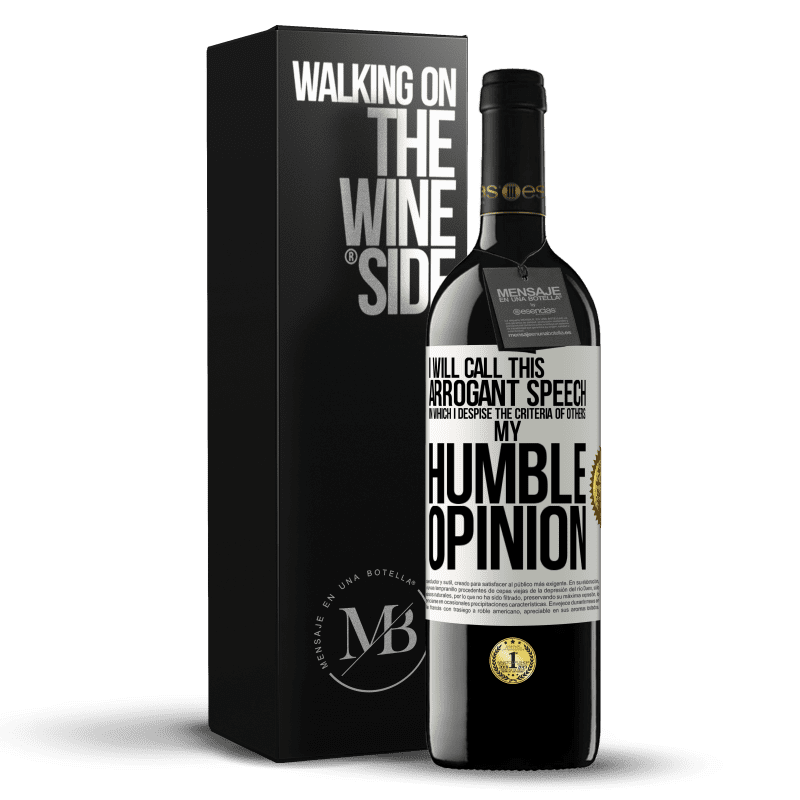 Message: "I will call this arrogant speech in which I despise the criteria of others: my humble opinion".