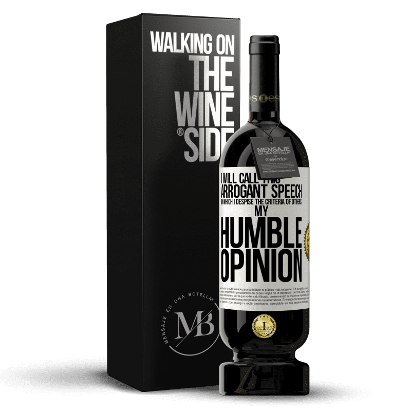 Message: "I will call this arrogant speech in which I despise the criteria of others: my humble opinion".