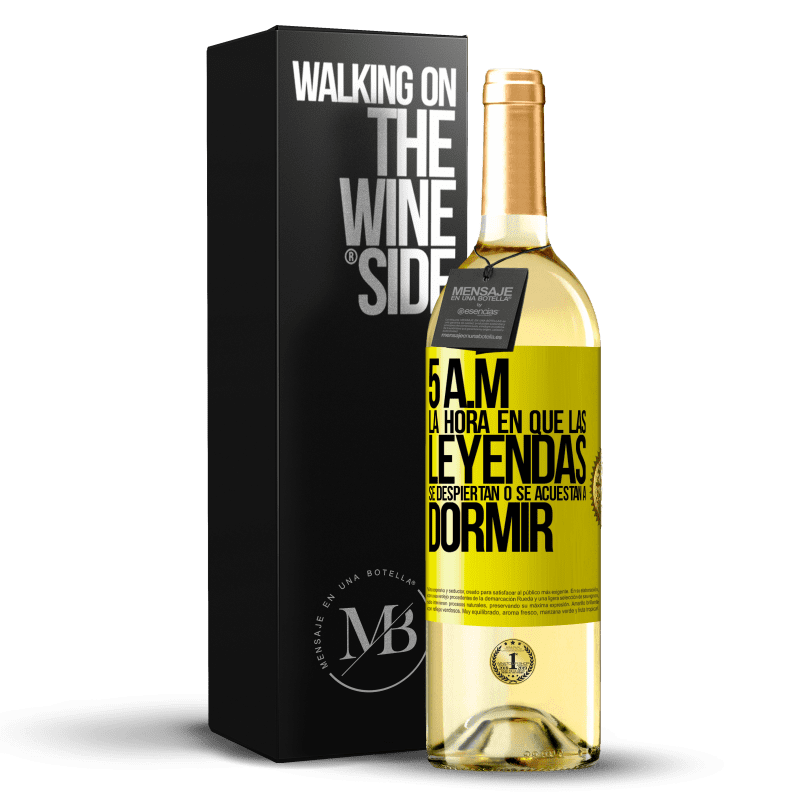 Vino Blanco. D.O. Rueda. Cosecha 2025. España. Edición WHITE «5 A.M. La hora en que las leyendas se despiertan o se acuestan a dormir». Etiqueta Amarilla. Etiqueta personalizable. Vino joven. Verdejo. Mensaje en una Botella by Esencias..