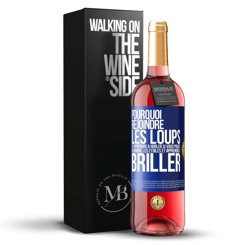 Vin rosé. D.O. Cigales. Récolte 2025. Espagne. Édition ROSÉ «Pourquoi rejoindre les loups et apprendre à hurler si vous pouvez rejoindre les étoiles et apprendre à briller». Étiquette Bleue. Étiquette personnalisable. Vin jeune. Tempranillo. Mensaje en una Botella by Esencias..
